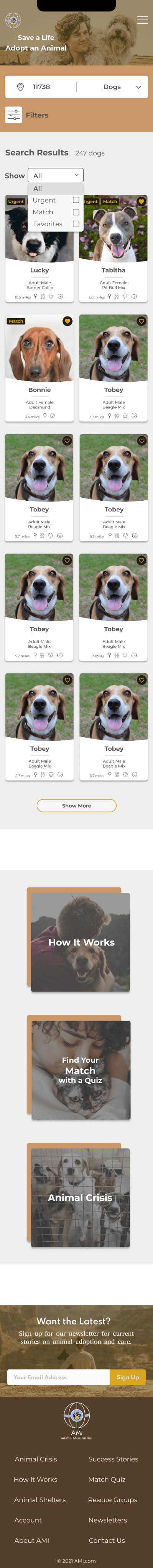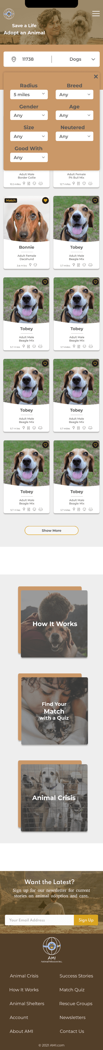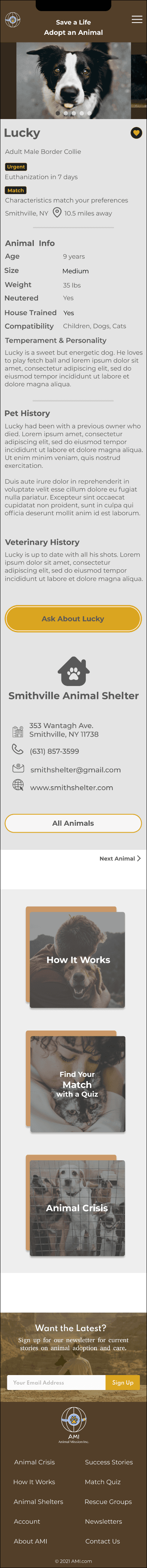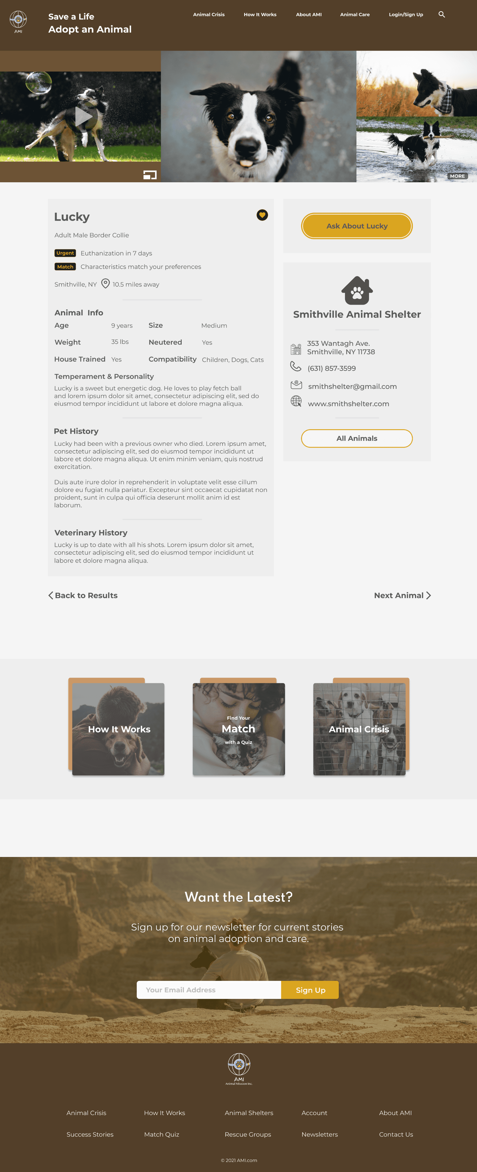 · The addition of a matching quiz would gather users' preferences for animals and match them to adoptable animals, displaying them prominently to the user. This would provide a more personalized adoption process and increase the chances of successful adoptions.