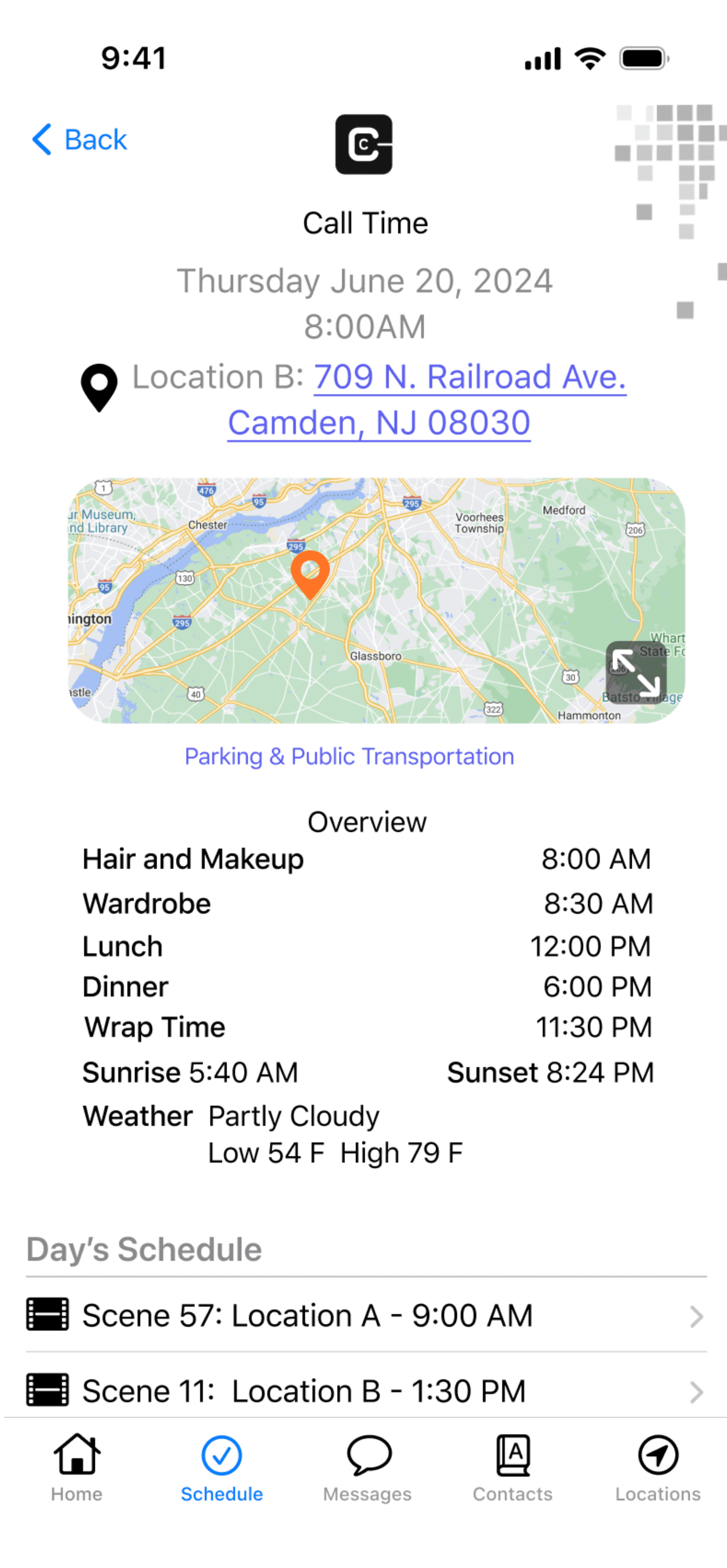 Call times so cast and crew know exactly when they are needed.