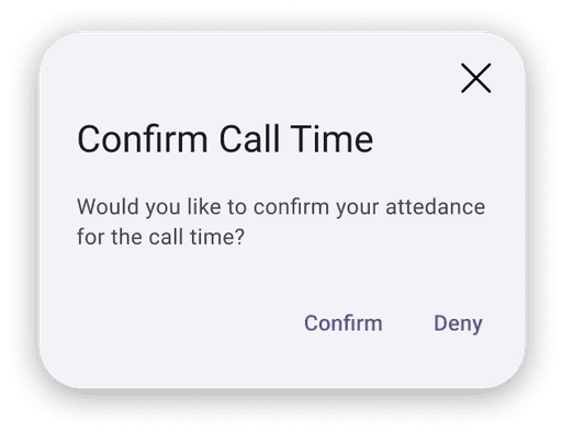 Are you sure you want to deny your attendance for the call time